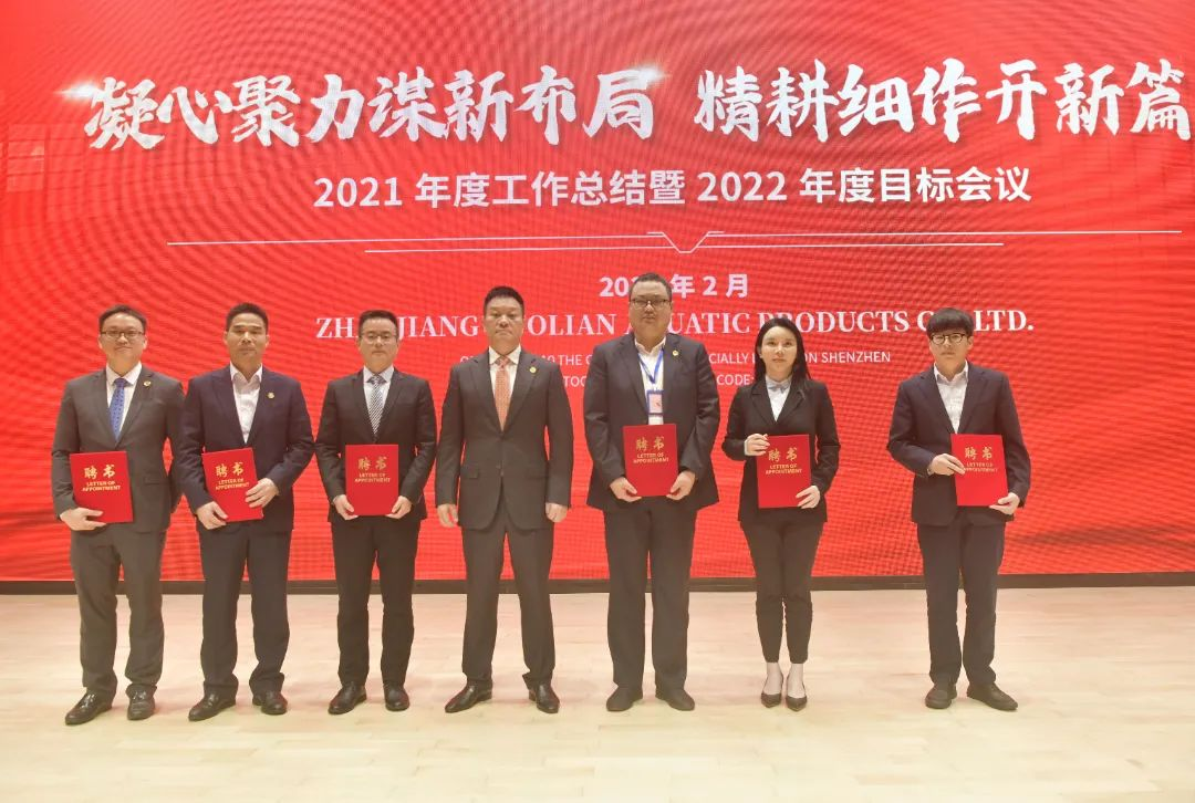 李董指出,經(jīng)營(yíng)效益是公司發(fā)展的重中之重,必須聚焦“專精特新”企業(yè)經(jīng)營(yíng)戰(zhàn)略。2022年,集團(tuán)將以品牌塑造、智造升級(jí)為引領(lǐng),聚焦三大必勝之戰(zhàn),加快推進(jìn)2021~2025集團(tuán)未來五年戰(zhàn)略目標(biāo)的實(shí)現(xiàn):一是強(qiáng)化智能化生產(chǎn)加工突破,以技術(shù)突破和功能應(yīng)用為產(chǎn)品賦能;二是專注國(guó)聯(lián)預(yù)制菜品完善升級(jí),持續(xù)優(yōu)化產(chǎn)品矩陣并全方位提升產(chǎn)品品質(zhì);三是加快品牌建設(shè),加大體系創(chuàng)新,加速融入“雙循環(huán)”,構(gòu)建系統(tǒng)化品牌建設(shè)管控體系,積極推進(jìn)營(yíng)銷、服務(wù)等產(chǎn)業(yè)鏈關(guān)鍵環(huán)節(jié)的執(zhí)行管理。以全面確保2022年,國(guó)聯(lián)水產(chǎn)集團(tuán)工廠安全、品質(zhì)穩(wěn)定高效;確保銷量爆發(fā)式增長(zhǎng);確保各項(xiàng)管理全面快速迭代升級(jí)。