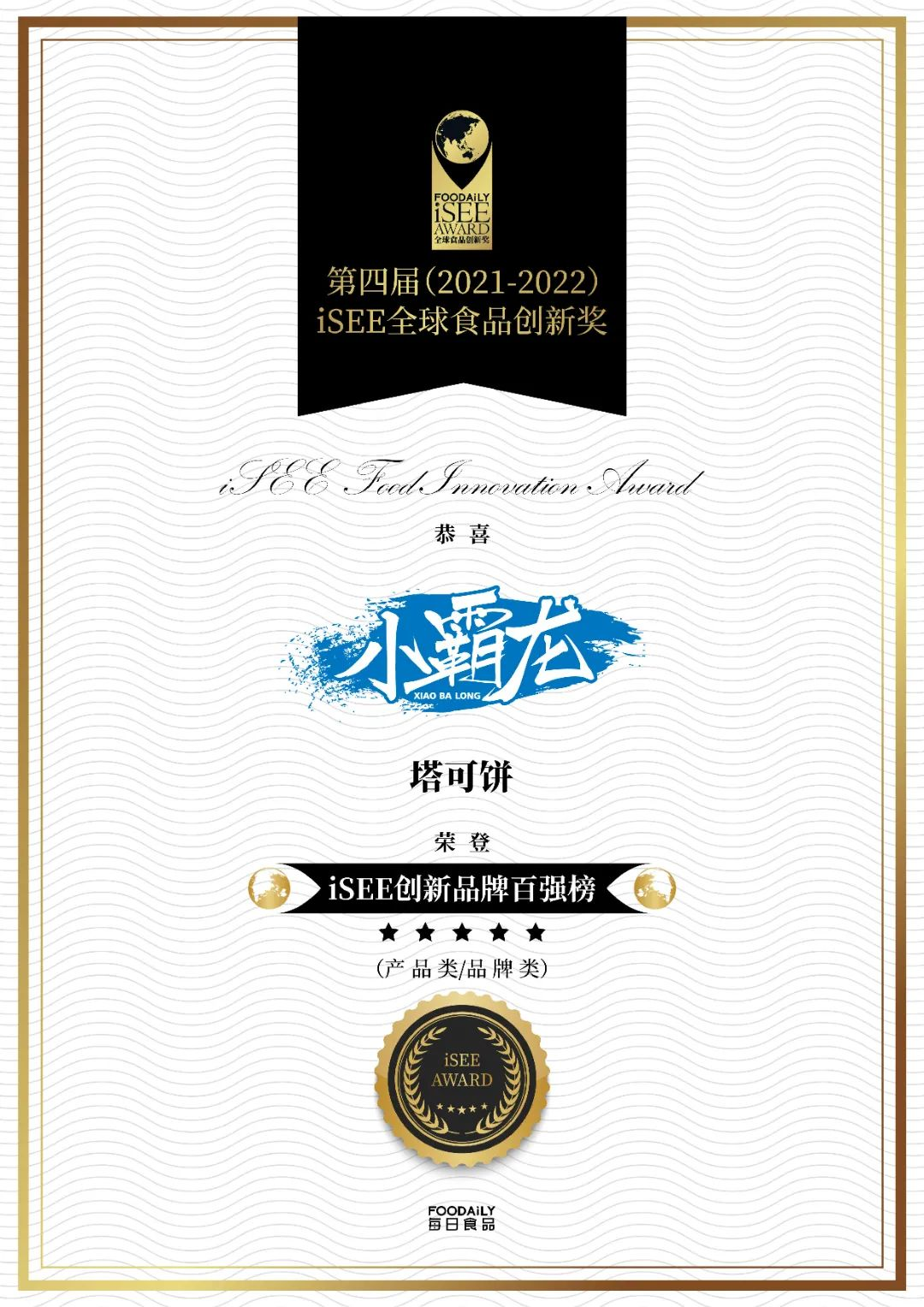 2022年3月24日,由“Foodaily每日食品”發(fā)起的第四屆(2021-2022)iSEE全球食品創(chuàng)新獎(jiǎng)(以下簡(jiǎn)稱(chēng)iSEE創(chuàng)新獎(jiǎng)),隆重公布產(chǎn)品類(lèi)&品牌類(lèi)【iSEE創(chuàng)新品牌百?gòu)?qiáng)榜】。國(guó)聯(lián)水產(chǎn)集團(tuán)旗下預(yù)制菜品牌“小霸龍”,憑借風(fēng)味烤魚(yú)、鮮蝦塔可餅殺出重圍,光榮上榜。