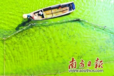 水產(chǎn)養(yǎng)殖戶(hù)正在捕魚(yú)。