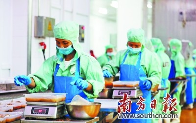 3月15日,在廣東國(guó)美水產(chǎn)食品有限公司的加工生產(chǎn)車(chē)間內(nèi),工人們?cè)诹魉€崗位上切魚(yú)、清洗、分揀,操作嫻熟,秩序井然?!拔覀児緭碛卸鄺l先進(jìn)加工生產(chǎn)線,年加工羅非魚(yú)片能力達(dá)2萬(wàn)噸。在烤魚(yú)制作過(guò)程中,公司運(yùn)用先進(jìn)技術(shù)保證產(chǎn)品口感鮮嫩?!睆V東國(guó)美水產(chǎn)食品有限公司副總經(jīng)理唐岸蓮說(shuō)。